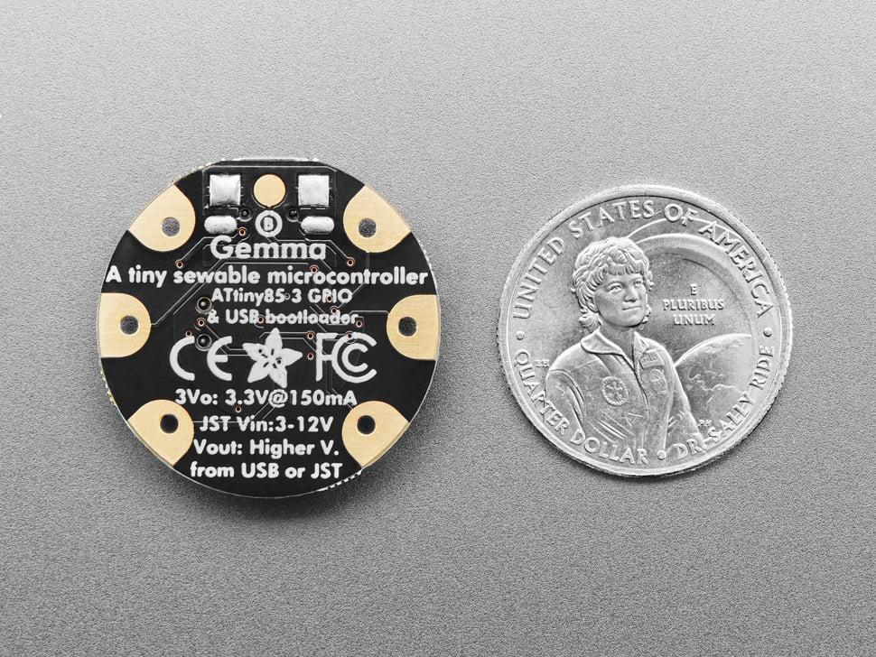 Ondanks zijn formaat is GEMMA uitgerust met 5 I/O-pinnen, waaronder analoge inputs en PWM- outputs . Hij is ontworpen voor eenvoudige bediening met naaibare of soldeerbare pads, waardoor hij ideaal is voor draagbare technologie zonder in te leveren op prestaties.