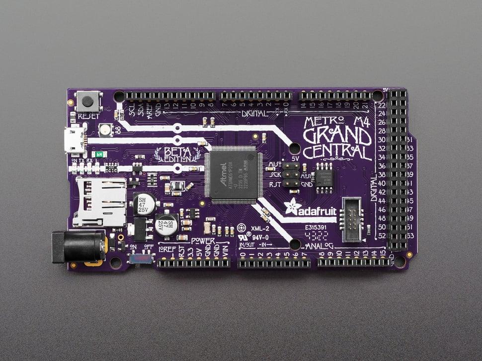 De Adafruit Grand Central is een krachtig board met de Microchip ATSAMD51. Dit robuuste board werkt als een druk treinstation, aangestuurd door een 120-MHz Cortex M4-processor met floating point-ondersteuning, waardoor je code snel en efficiënt werkt.
