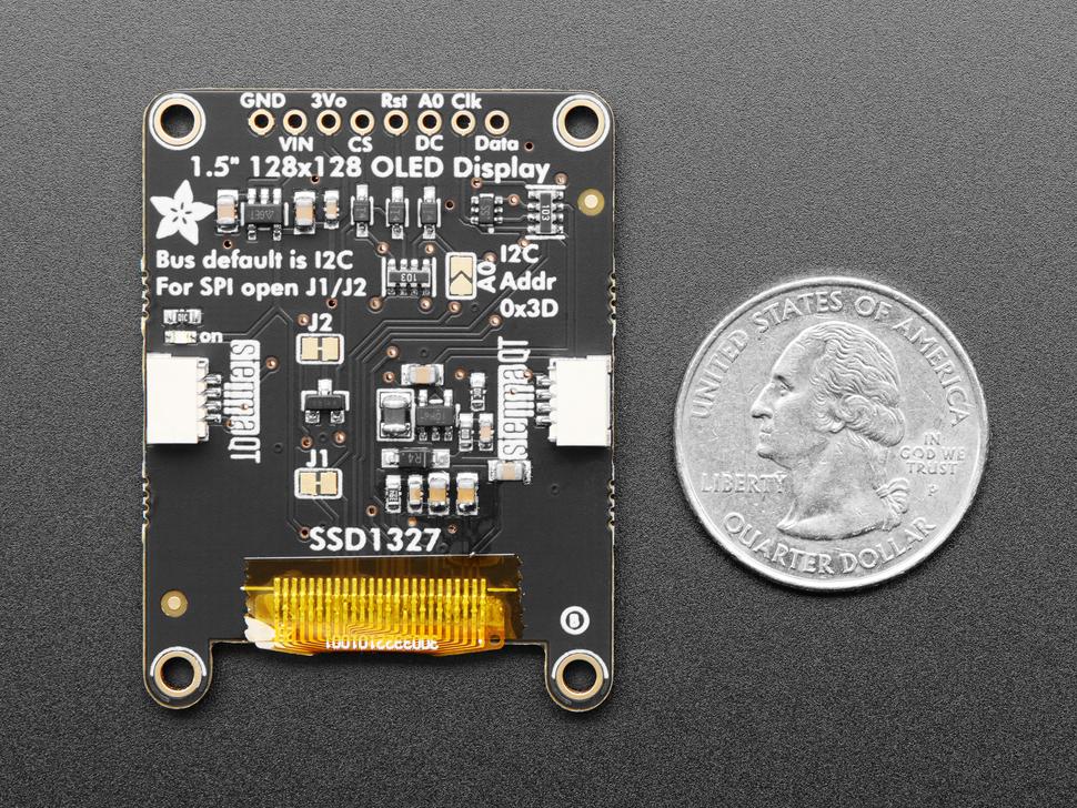 Elk grijstint OLED-pixel wordt individueel aangestuurd door de SSD1327 driverchip, die zowel I2C- als SPI-communicatie ondersteunt. Het display heeft een ingebouwde 3,3V-regelaar en een 12V-boostconverter, waardoor het compatibel is met zowel 3V als 5V apparaten. Naadloze integratie is mogelijk met de meegeleverde SparkFun qwiic compatibele STEMMA QT-connectors voor soldeervrije I2C-connectiviteit.