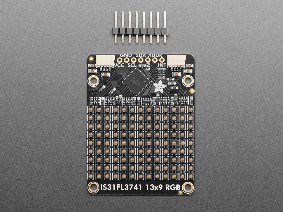 Voeg levendige RGB-verlichting toe aan je volgende project met deze charmante 13x9 RGB LED- breakout , bestaande uit 117 kleine LED's gerangschikt in een nauwkeurig raster. Ondanks hun compacte formaat van 2x2 mm valt elke LED op met verbluffende 24-bits kleuren, aangestuurd door één controllerchip via I2C, met naadloze 8-bits PWM-instellingen.
