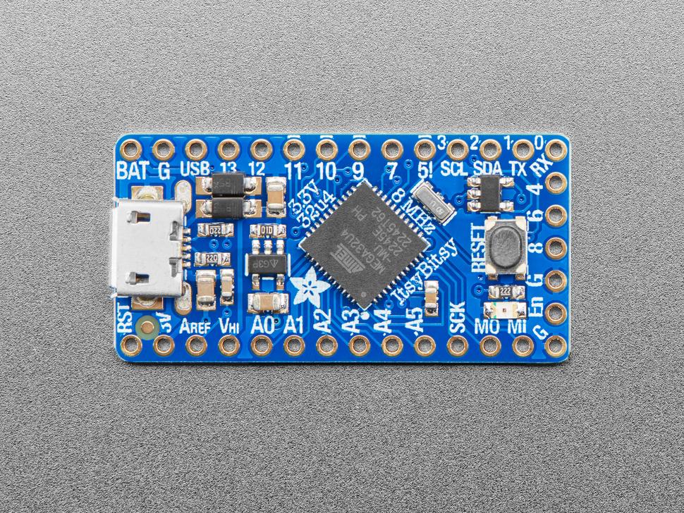 Specificaties zijn onder meer: een QFN-pakket ATmega32u4-chip, 3,3 V voeding en logica, 8 MHz kloksnelheid, 2 KB RAM, 28K FLASH, USB bootloader met LED-indicator, Micro- USB -aansluiting, HID-toetsenbord/muis/MIDI-mogelijkheden, board spanningsregelaar met meerdere beveiligingen en meer.