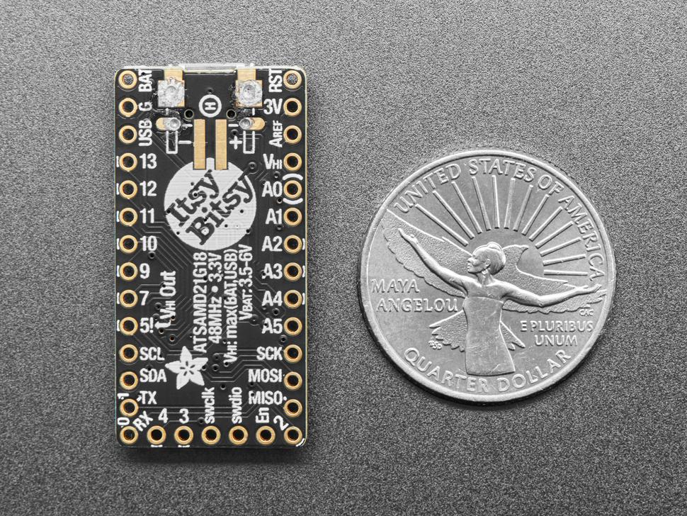 Kleiner dan een feather , maar groter dan een trinket , biedt de Adafruit ItsyBitsy M0 Express compacte kracht met een krachtige ATSAMD21 Cortex M0-processor met een kloksnelheid van 48 MHz. Deze microcontroller past perfect in krappe ruimtes, maar zit boordevol functies.