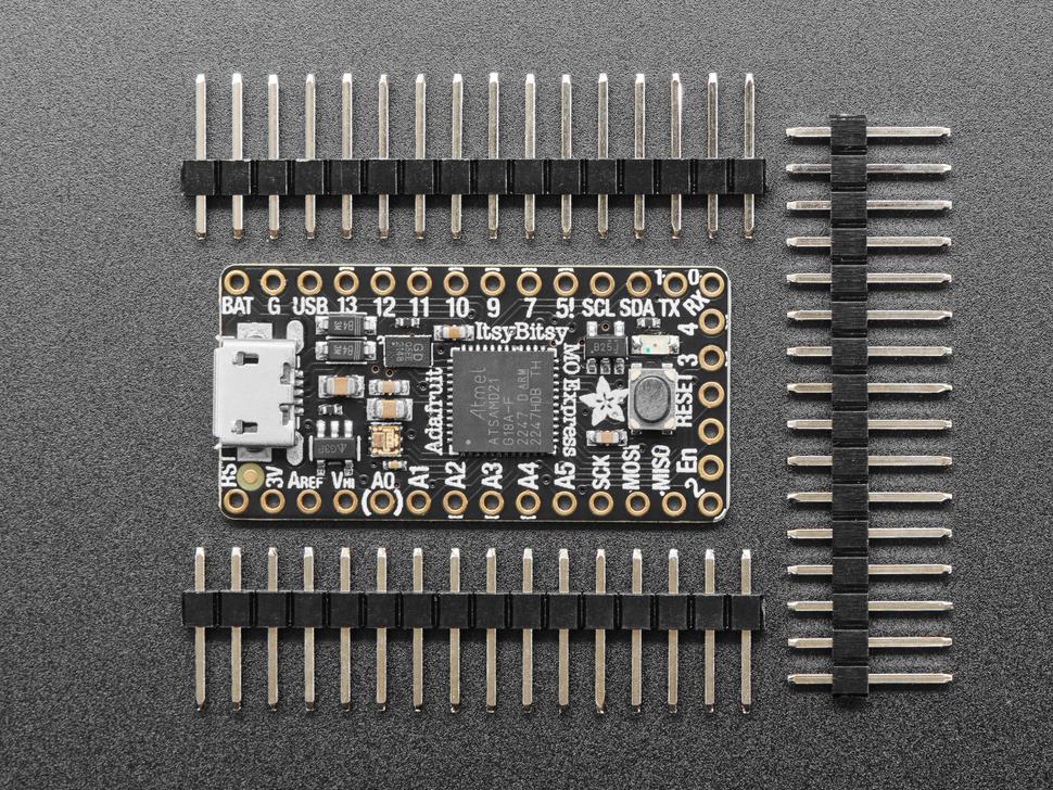 De ItsyBitsy M0 Express measures slechts 3,5 cm lang en 1,8 cm breed en beschikt over 6 voedingspinnen en 23 digitale GPIO-pinnen, inclusief analoge in-, analoge uit- en PWM-opties. Uitgerust met 2 MB SPI Flash blinkt hij uit in datalogging, bestandsopslag en het soepel uitvoeren van CircuitPython-code.