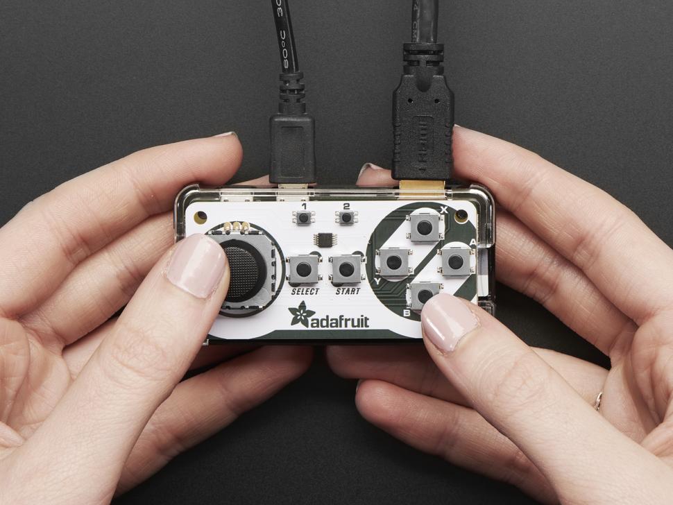 Omdat je de Pi waarschijnlijk vast zult houden tijdens het gamen, raden we je ten zeerste aan om een comfortabele behuizing te gebruiken! De case van de Adafruit Pi zero werkt prima en is mooi afgerond voor een comfortabele grip. Een mini-HDMI-kabel maakt het ook gemakkelijk om de Pi aan te sluiten op je HDMI-scherm. Raspberry Pi , HDMI-kabels, SD-kaart, behuizing en display zijn niet inbegrepen. Maar we hebben al deze onderdelen wel op voorraad in de winkel. Bekijk onze handleiding voor hulp bij de installatie en het gebruik – je kunt zo gamen!