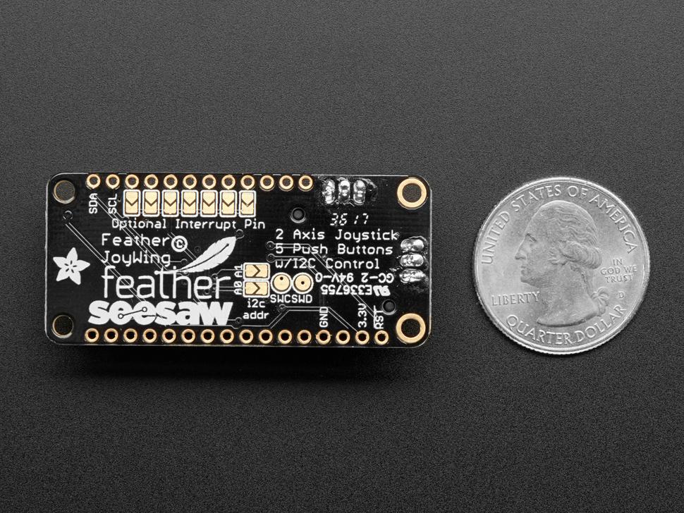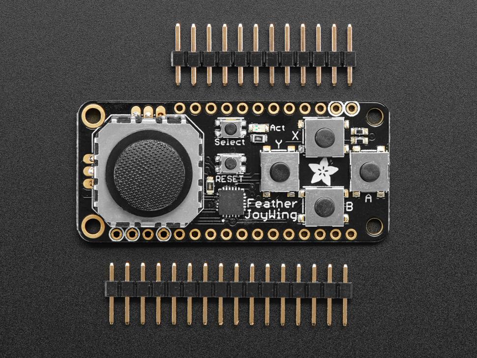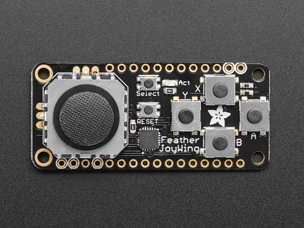 Transformeer je feather in een compacte gaming- of robotcontroller met de Joy FeatherWing , voorzien board een joystick met twee assen en vijf momentknoppen, waaronder vier grote en één kleine. Hij maakt naadloos verbinding met je microcontroller via I2C, waardoor je analoge of digitale pinnen behouden blijven.