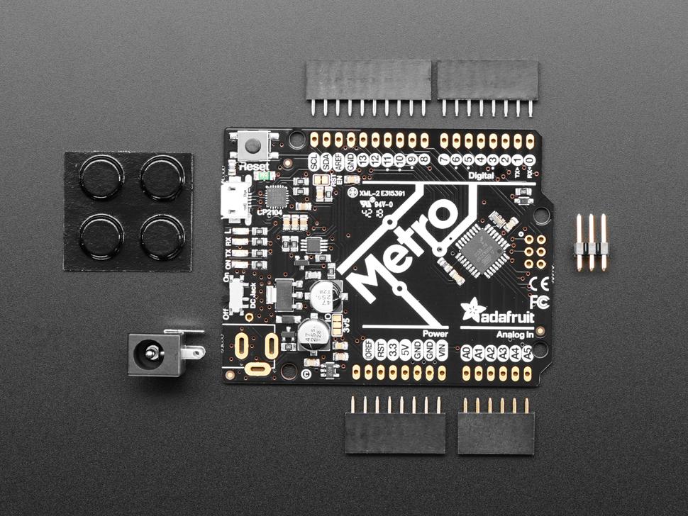 De METRO wordt volledig geassembleerd en getest geleverd en wordt geleverd zonder headers of DC-aansluiting, wat flexibiliteit in aanpassing biedt. Soldeer draden of headers rechtstreeks op breakout -pads indien nodig en profiteer van vier rubberen bumpers voor stabiliteit tijdens gebruik.