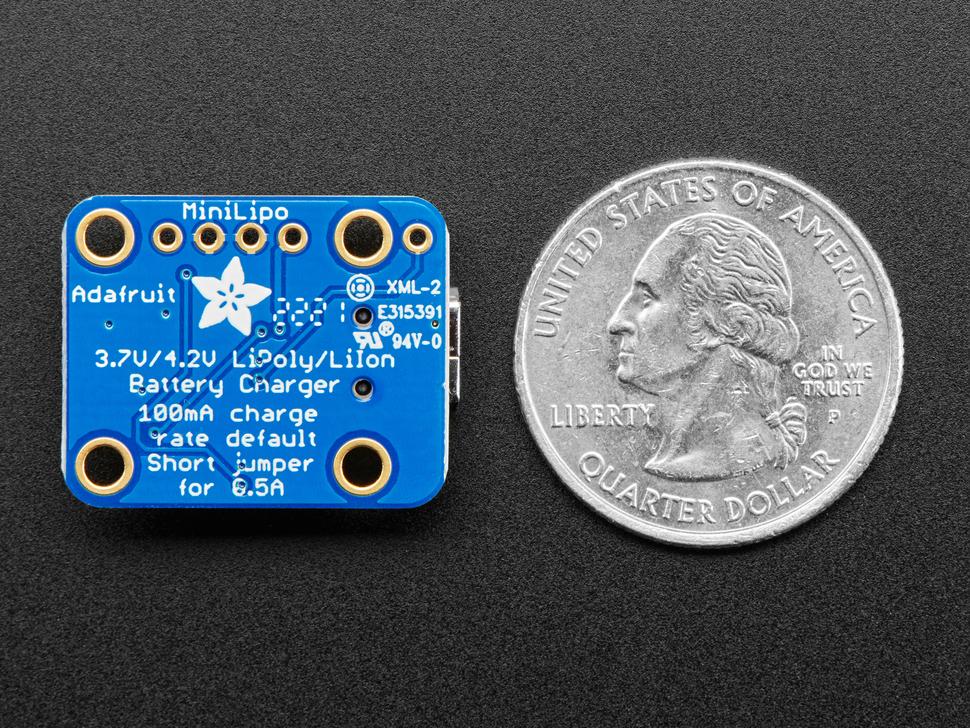 O zo handig, deze kleine lipo-lader is klein en gebruiksvriendelijk, waardoor je hem op je bureau kunt zetten of naadloos in elk project kunt integreren. Sluit hem eenvoudig via een mini-USB-kabel aan op een USB poort en sluit een 3,7V/4,2V lithium-polymeer- of lithium-ion-accu aan op de JST-aansluiting aan de andere kant.