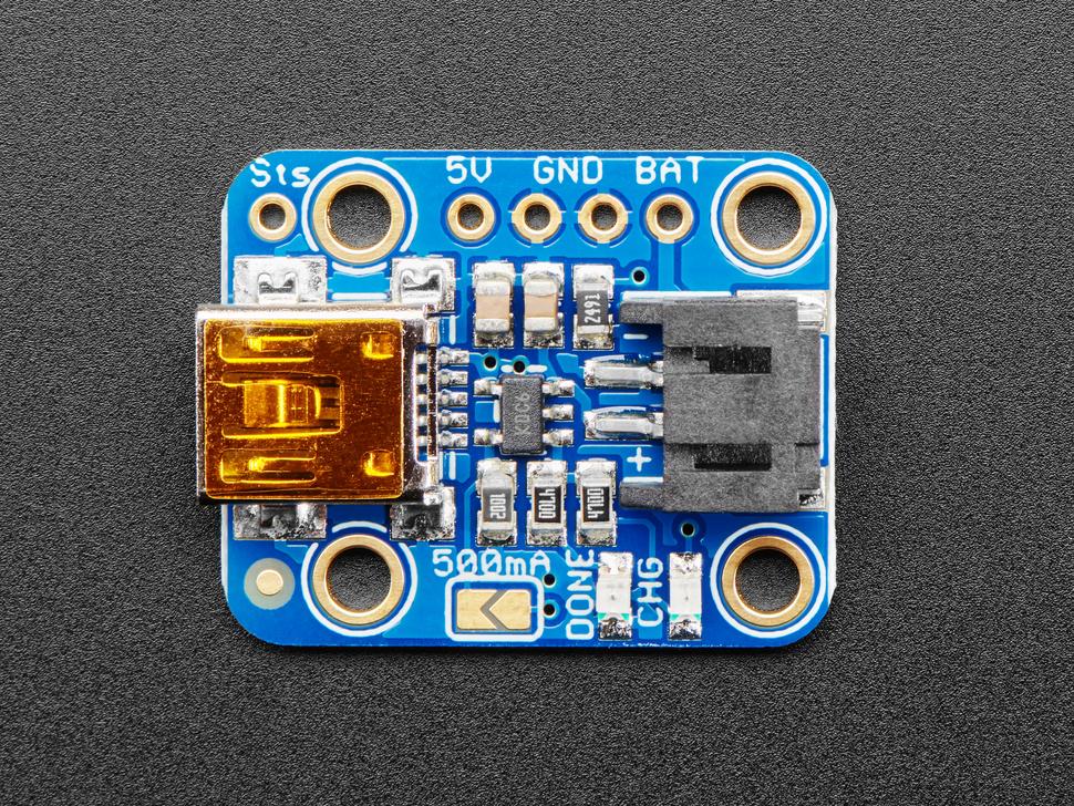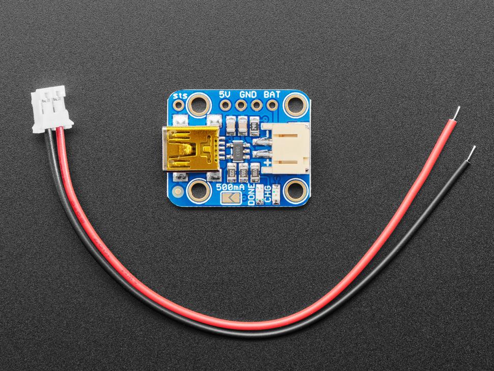 Schakel over naar de 500mA-modus door de jumper aan de voorkant te solderen. Ideaal voor het opladen van batterijen van 500 mAh of groter. Speciaal ontworpen voor Adafruit LiPoly/Li-ion-batterijen, aangezien andere batterijen een andere spanning, chemische samenstelling, polariteit of pinout kunnen hebben. Wordt gemonteerd en getest geleverd met een gratis bonus JST-kabel. Inclusief 5V-ingang via mini-B USB connector. Batterijen zijn niet inbegrepen.