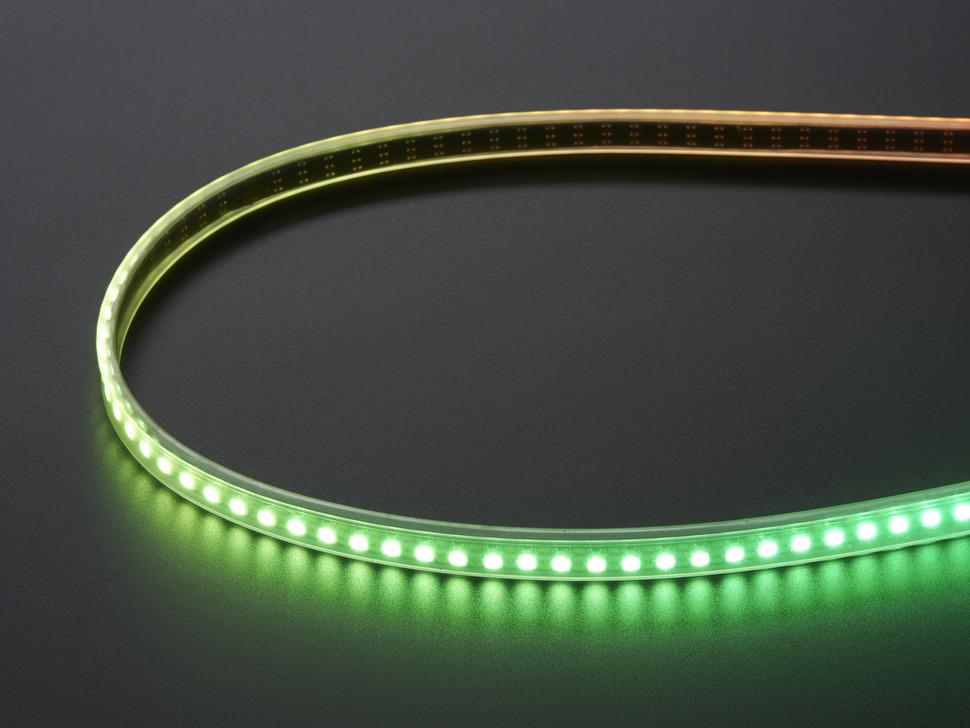Zo dun. Zo mini. Zo piepklein. Het is de 'slanke' versie van onze klassieke NeoPixel-strips! Deze NeoPixel-strips hebben 144 digitaal adresseerbare pixel mini-leds per meter en zijn zeer betaalbaar. Ze zijn slechts 7,5 mm (0,3 inch) breed als je de strip uit de behuizing haalt. Dit is de strip met zwarte flex-printplaat, identiek aan de witte 144 leds/meter, behalve dat de flexstrip een ander kleurmasker heeft.