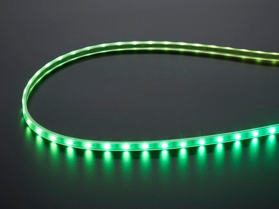 Bedien elk van de 60 RGB-leds per meter individueel met 8-bits PWM-precisie, wat 24-bits kleur per pixel oplevert. Eén digitale output is nodig om data te verzenden, met ingebouwde PWM in elke led-chip. De strip en de weerbestendige ommanteling zijn gemaakt van flexibel PCB-materiaal, dat eenvoudig kan worden doorgeknipt met een draadkniptang op snijlijnen om de 17 mm. Soldeer de strips aan de 2,54 mm koperen pads om ze te verbinden of naar behoefte te verlengen. Onze 5V/2A-voeding kan 1 meter aansturen en een 5V/10A-voeding kan tot 10 meter aan, afhankelijk van het gebruik.