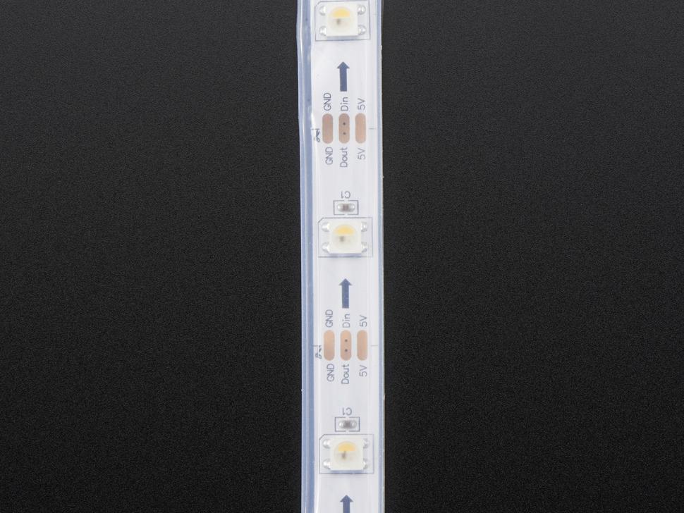 Voedingsopmerking: Gebruik altijd een 5V DC-voeding voor optimale prestaties. Er is een tutorial beschikbaar, inclusief bedradingshandleidingen, berekeningen van het stroomverbruik en praktische codevoorbeelden. Zorg ervoor dat uw NeoPixel- library RGBW ondersteunt voor optimale compatibiliteit. Let op: Bedradingsfouten of een onjuiste voeding kunnen de strip beschadigen.