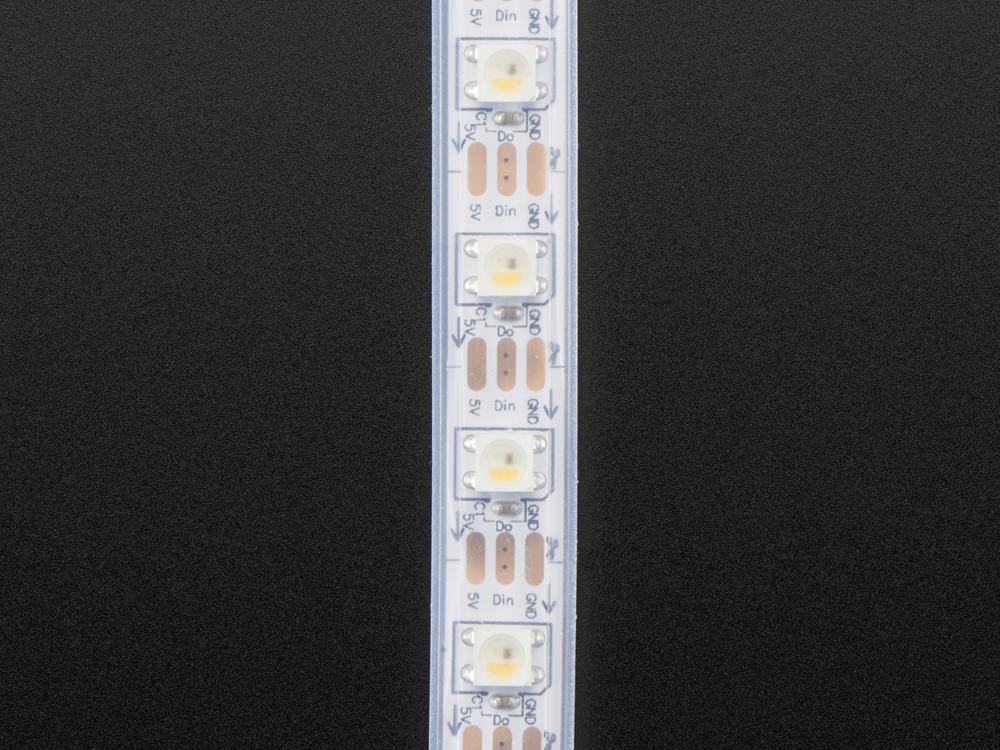 Dit is de 60 LED / m RGBW strip met een doorzichtige behuizing en witte flex print! We hebben ook RGBW NeoPixel-strips van 30 LED / m en 144 LED / m.