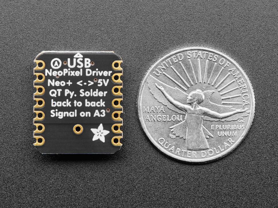 Maak kennis met de Adafruit NeoPixel Driver BFF, je betrouwbare metgezel voor je project. Ontworpen om perfect aan te sluiten op de achterkant van elke QT Py- of Xiao-board, kan hij worden vastgesoldeerd of bevestigd met pin- en socketheaders, wat zorgt voor flexibiliteit in de montage.