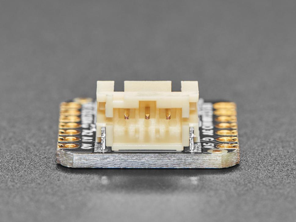 Deze PCB is uitgerust met een 74AHCT125 single-gate level shifter die de output van pin A3 naar 5V verhoogt, met behulp van de USB-voeding. Het stuurt deze voeding, aarde en data naar een JST PH 2mm 3-pins connector voor eenvoudige NeoPixel-aansluitingen.