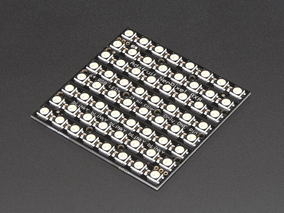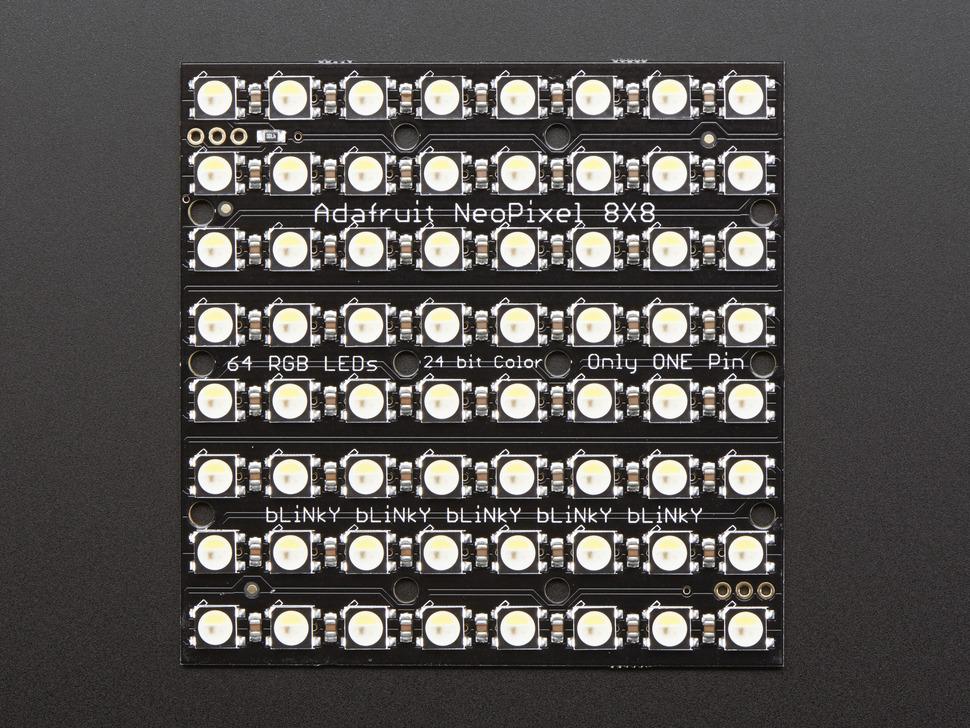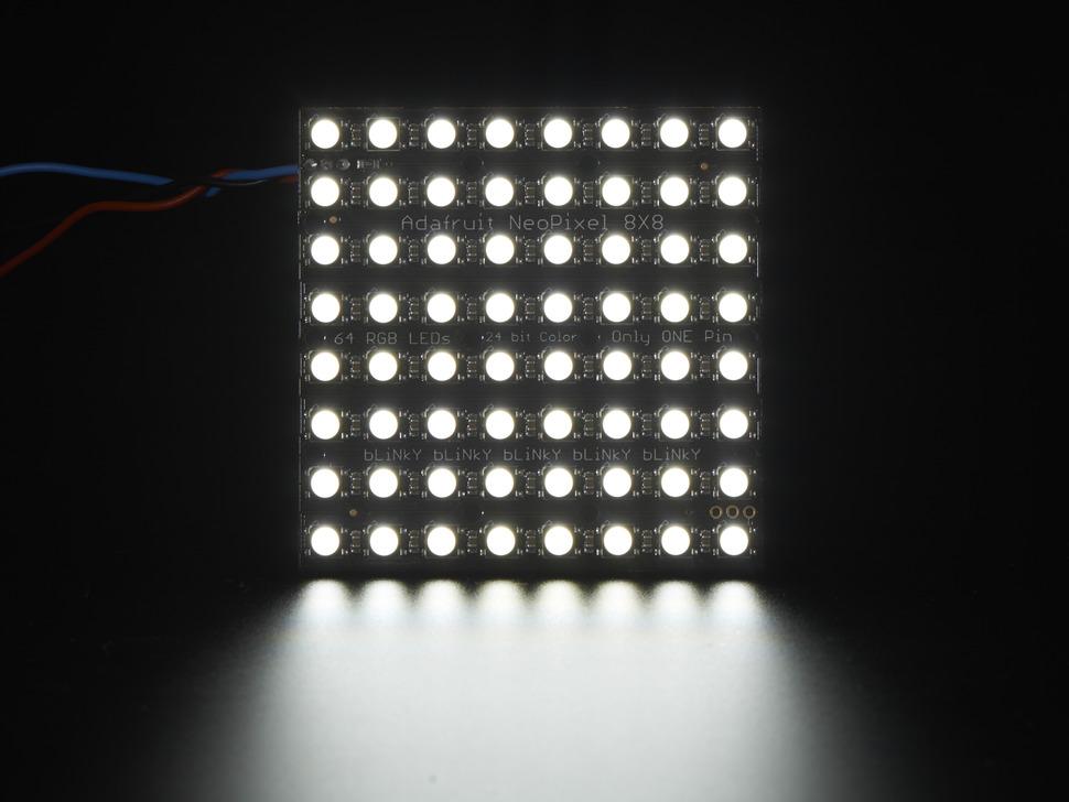 Zet je zonnebril op voordat je deze ledmatrix aansluit: een uitgebreide reeks van 64 oogverblindende RGBW-leds siert de NeoMatrix en levert een oogverblindend spectrum aan configureerbare kleuren en wit licht. Gerangschikt in een compacte 8x8-configuratie is elke pixel individueel adresseerbaar en wordt aangestuurd met één microcontrollerpin, wat 24-bits kleurvariatie biedt.