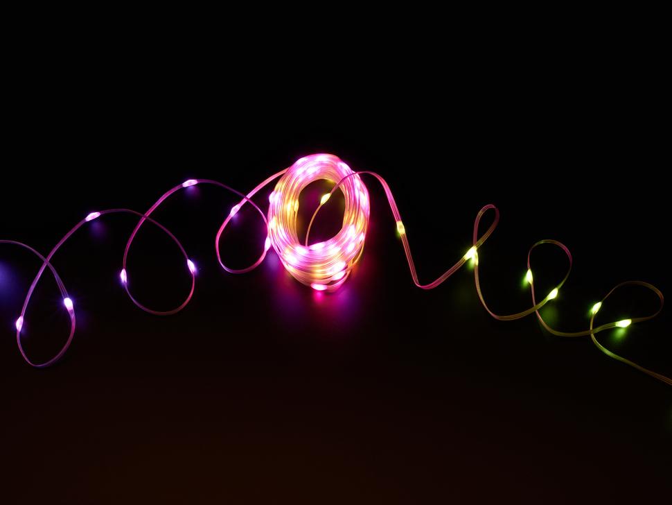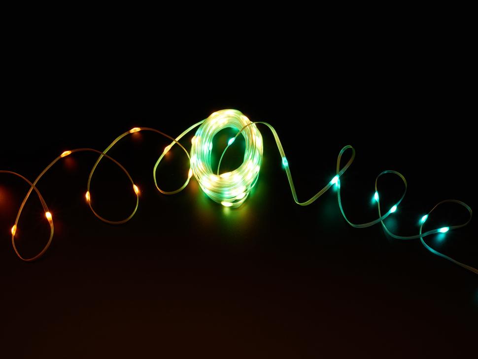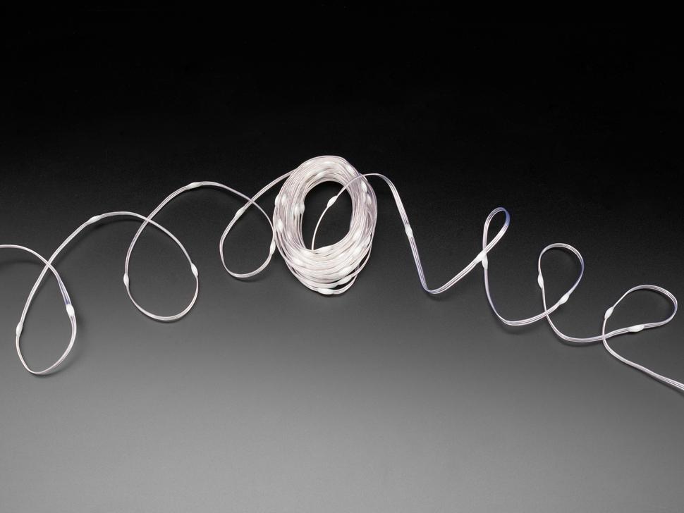 Onze strengen bevatten 100 NeoPixels met een tussenruimte van 100 mm, vastgezet met een PVC-coating en epoxy stippen voor weerbestendigheid. Let op: ze zijn geschikt voor tijdelijk buitengebruik, maar moeten niet volledig ondergedompeld worden.