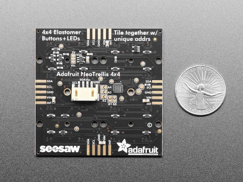 Een 4x4- board met I2C-communicatiemogelijkheden biedt een tegelbaar ontwerp met vijf adrespinnen, waardoor maximaal 32 borden kunnen worden aangesloten. Plaats ze in elke gewenste configuratie en integreer ze naadloos in grote interactieve displays of bedieningsopstellingen.