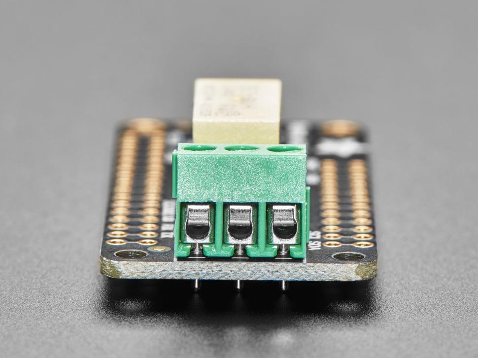 Each FeatherWing includes a fully assembled and tested PCB with a terminal block soldered on. We provide headers for easy attachment to your Feather. Some light soldering is required. Use caution with high voltages (> 24V); ze vereisen ervaring en naleving van veiligheidsrichtlijnen. Bekijk onze leergids voor gedetailleerde instructies over het gebruik van zowel niet-vergrendelbare als vergrendelbare Mini Relay FeatherWings.