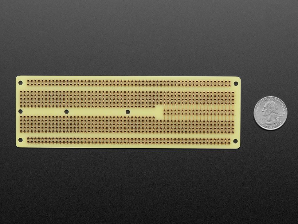 Dit board is de printplaat die je altijd al wilde hebben, maar waar je nooit aan hebt gedacht! We hebben de basislayout van een breadboard op ware grootte genomen (de printplaat heeft 60 rijen in plaats van 63) en daar een prachtige printplaat van gemaakt. De bovenkant heeft een witte zeefdruk en dezelfde markeringen die je kent, om het overzetten van componenten te vergemakkelijken. De onderkant heeft het 5-gats pad-ontwerp dat past bij een klassiek breadboard , met 4 voedingslijnen aan de zijkanten en geen masker, zodat je gemakkelijk sporen kunt snijden wanneer nodig.