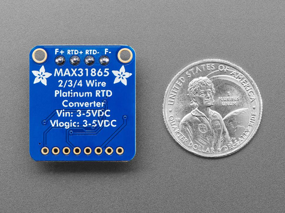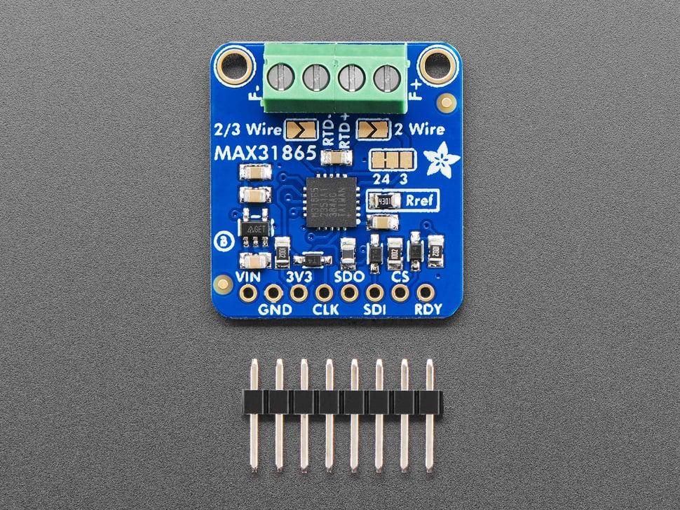 Het breakout is voorzien van een 4300Ω 0,1% referentieweerstand, een 3,3V-regelaar en level shifting voor compatibiliteit met zowel 3,3V- als 5V-systemen, zoals Arduino . Extra functies zijn board andere een gebruiksvriendelijk montageproces met meegeleverde terminal blocks en headers die geschikt zijn voor breadboards of perfboards. Let op: de PT1000 RTD-sensor is niet inbegrepen, maar is apart verkrijgbaar.