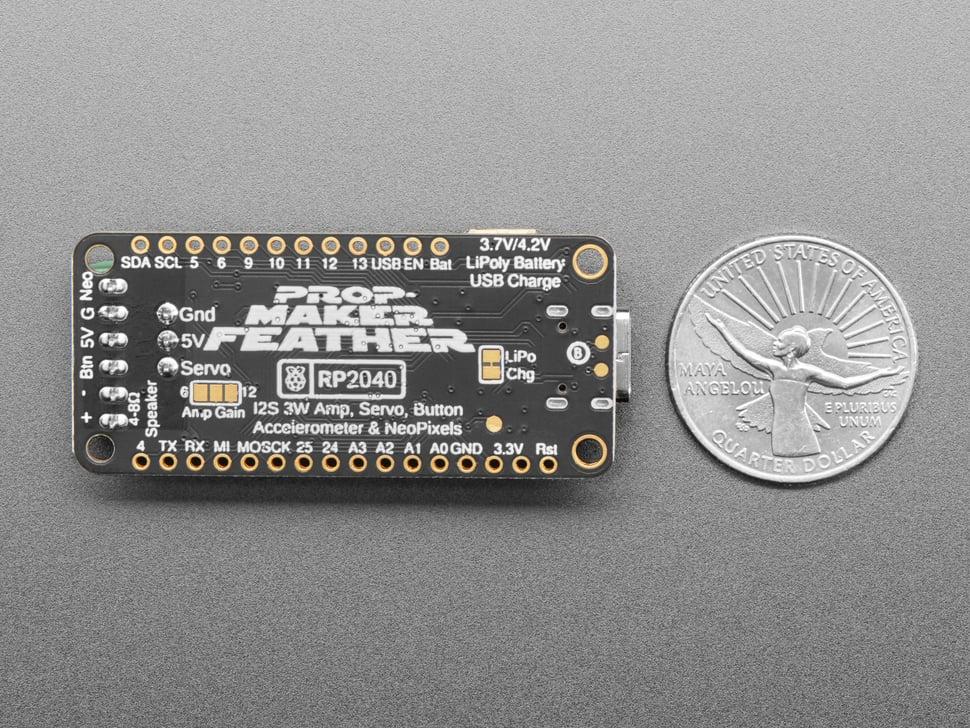 De Adafruit RP2040 Prop-Maker feather combineert de RP2040 feather met een Prop-Maker FeatherWing , speciaal ontworpen voor rekwisietprojecten. Hij zit boordevol functies voor het ontwerpen van sabels, rekwisieten, speelgoed en meer, waardoor solderen tot een minimum wordt beperkt of zelfs overbodig wordt.