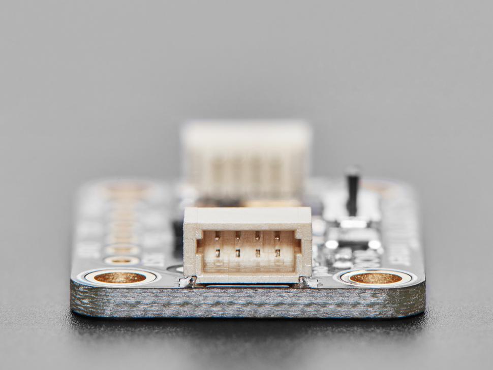 Om de integratie te stroomlijnen, hebben we een aangepaste PCB gemaakt in de STEMMA QT vormfactor, zodat alles naadloos kan verbinden. Compatibele STEMMA QT connectors zorgen voor een soldeervrije interactie met de S-35710 en andere componenten, waarbij gebruik wordt gemaakt van SparkFun Qwiic I2C kabels voor een probleemloze setup.