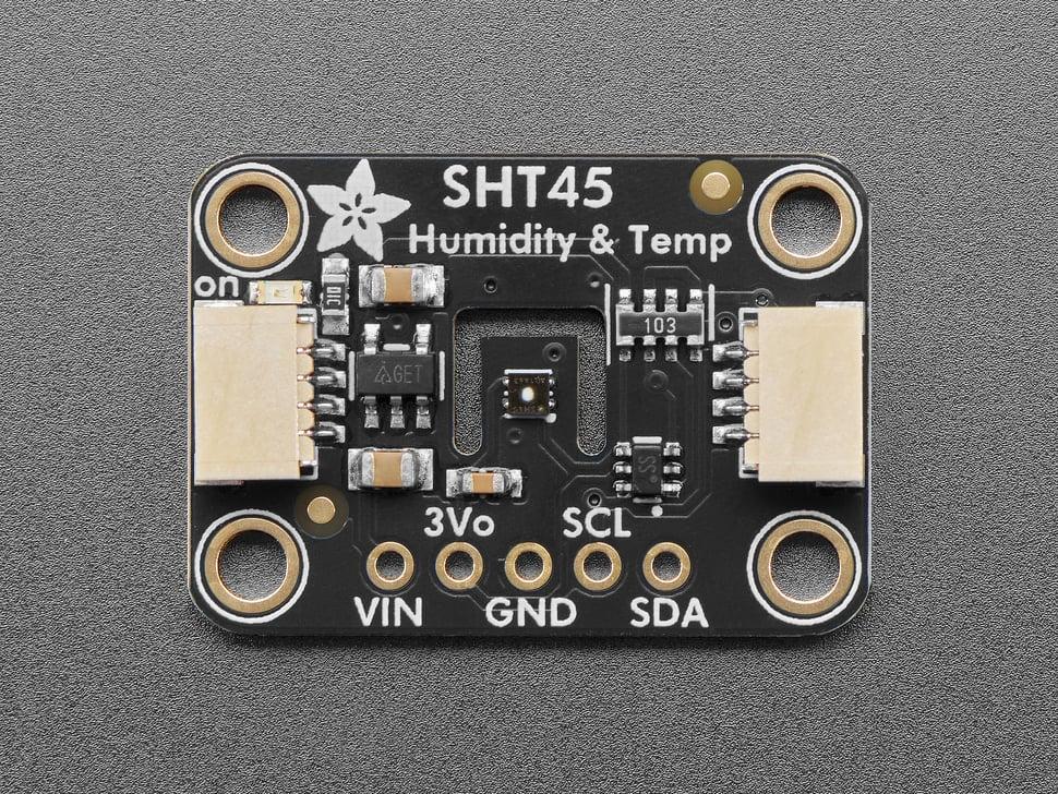 Sensirion SHT45-sensoren zijn super nauwkeurig, met een typische relatieve vochtigheidsnauwkeurigheid van ±1,0% tussen 25 en 75% en een typische temperatuurnauwkeurigheid van ±0,1°C tussen 0 en 75°C. Deze sensor gebruikt een betrouwbare I2C-interface, wat de integratie makkelijker maakt met slechts twee draden plus stroom en aarde.