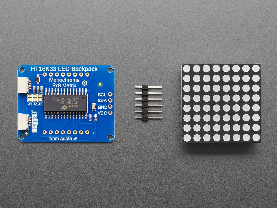 Bij Adafruit voelen we je pijn! Zou het niet geweldig zijn als je een matrix kon aansturen zonder al die bedrading? Daar komen deze mooie LED-matrixrugzakken goed van pas. We hebben ze in drie varianten: een mini 0,7" 8x8, een kleine 1,2" 8x8 en een 4-cijferige 0,56" 7-segment. Ze werken perfect met de matrixen die we in de Adafruit -winkel hebben en maken het toevoegen van een helder display kinderspel.