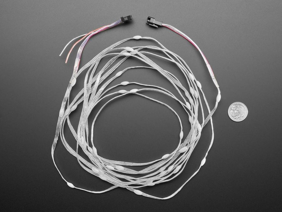 Fleur elk project op met de veelzijdige ledstrips met zachte, flexibele draadmini-NeoPixels. Met 50 leds met een tussenruimte van ~100 mm zijn deze strips perfect voor inbouw in kostuums, wearables en constructies.