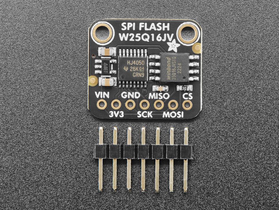 Voor Arduino-gebruikers werkt de Adafruit_SPIFlash-bibliotheek probleemloos samen met deze chip. Er zit een beetje header bij voor eventueel solderen, ideaal om in een breadboard te prikken wanneer dat nodig is.