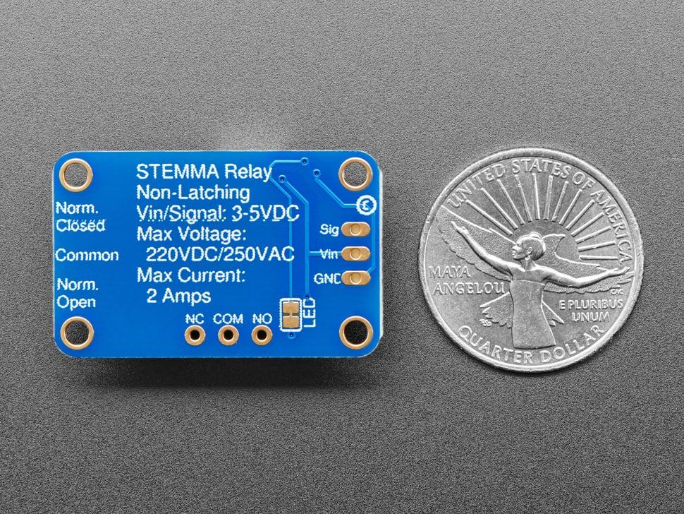 STEMMA plug-and-play-onderdelen maken solderen verleden tijd! Met het STEMMA Non-Latching Mini Relay kunt u uw vermogen met ongeëvenaard gemak beheren. Of u nu lampen inschakelt of solenoïdes aanstuurt, het werkt naadloos tot 250 VAC of DC via elke microcontroller of microcomputer.