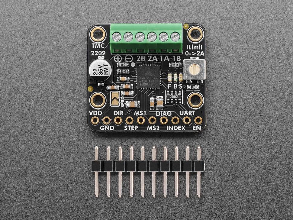 Verhoog je projecten met de Adafruit TMC2209 Stepper Motor Driver Breakout Board. Bekend om zijn stille werking, dankzij innovatieve microstepping-technologieën, is het speciaal ontworpen om nauwkeurige en krachtige bewegingen aan te sturen in toepassingen zoals CNC-machines en 3D-printers.
