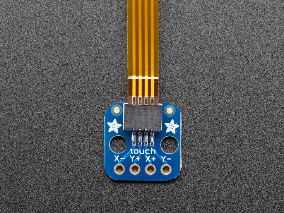 Als je een resistief board breakout . Uitgerust met een medium pitch (1,0 mm) connector, splitst het zich op in de vier resistieve draden van het paneel voor naadloze integratie.