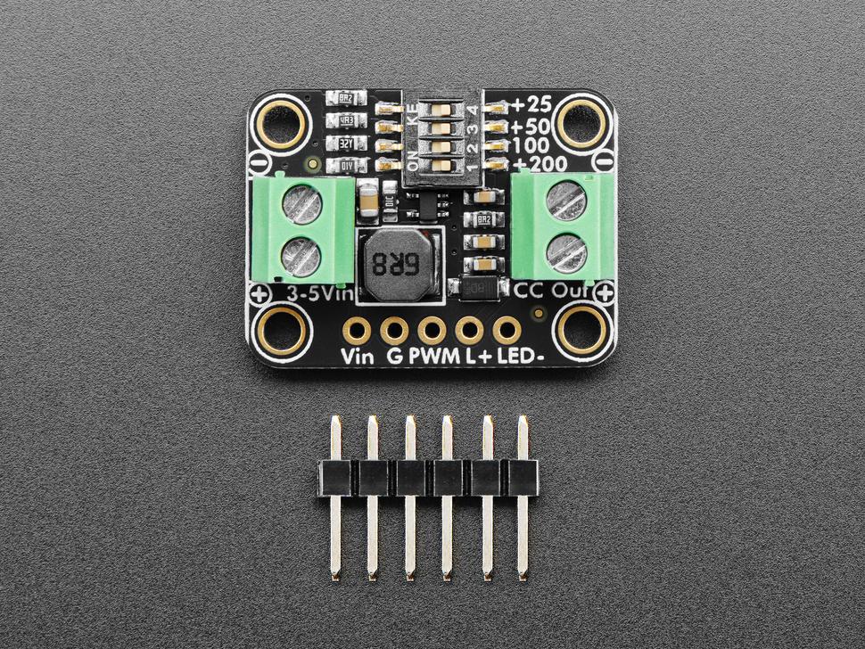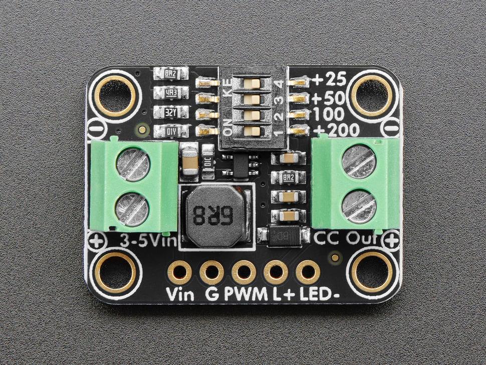 De Adafruit Constant Current Boost converter voor leds vereenvoudigt het aansturen van leds, ongeacht of ze in serie of parallel zijn geschakeld. Dankzij de TPS61169-chip kan hij tot 40 V en 400 mA leveren met een ingangsspanning van 3-5 V.
