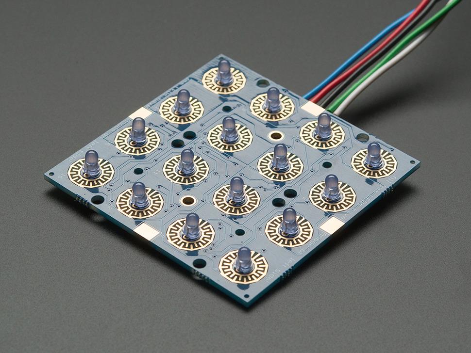 Soldeervriendelijke randconnectoren maken het eenvoudig om meerdere printplaten te combineren en ondersteunen uitgebreide lay-outs tot 128 knoppen of LED's met slechts twee I²C-draden. Deze flexibiliteit maakt talloze configuraties mogelijk, waardoor de Trellis een aanpasbare oplossing is voor interactieve projecten.