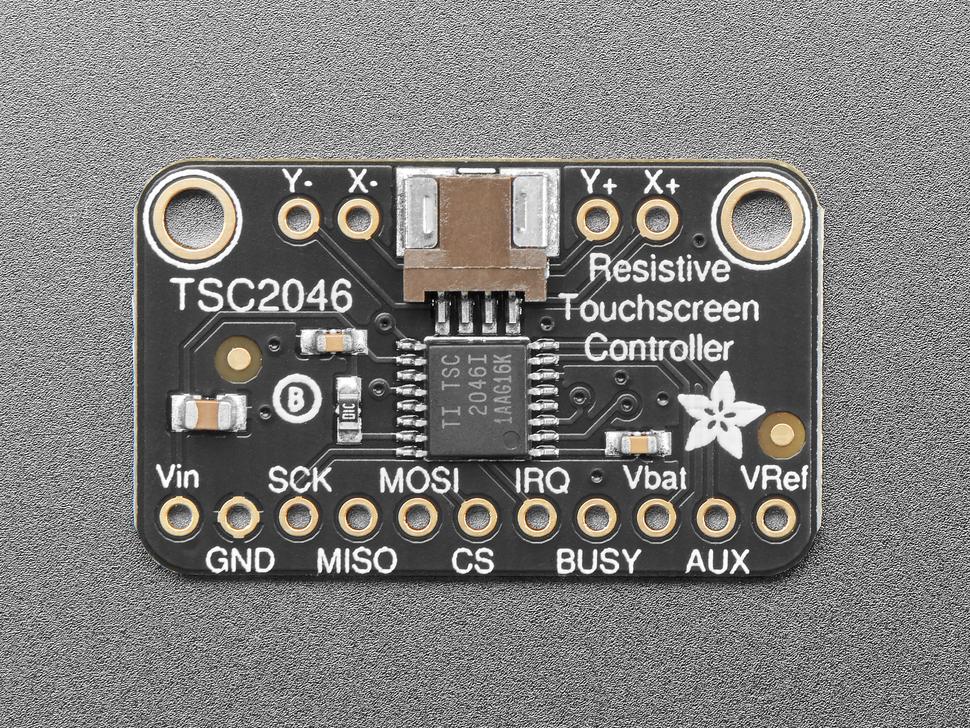 Compatibel met 3-5V logica, ondersteunt het schermen met een 1mm pitch FPC-kabels of kan het worden gesoldeerd aan andere soorten touchscreens met behulp van de X/Y-contacten op 0.1" pitch breakouts.Ondersteund door een simpele Arduino-bibliotheek zorgt dit apparaat voor snelle detectie en verwerking van aanraakpunten, met directe X-, Y- en Z- (druk) resultaten. De meegeleverde IRQ-pin vermindert de SPI-polling, terwijl extra ADC-pinnen de veelzijdigheid vergroten.