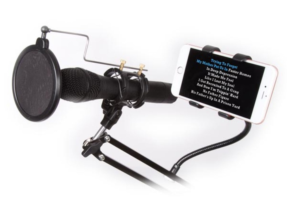 De standaard heeft een verstelbare hoogte en een flexibele houder om je apparaten perfect te positioneren. Of je nu een podcast opneemt of live aan het streamen bent, de opstelling ondersteunt moeiteloze audio-opname en video-streaming.