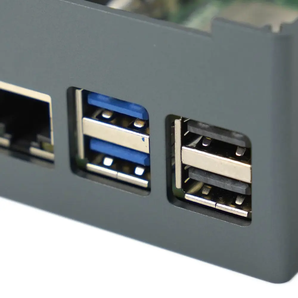 De praktische eigenschappen worden versterkt door de acryl behuizing, voorzien van warmteafvoerende gaten, die het thermische beheer verder bevorderen. Dit doordachte ontwerp beschermt het moederbord niet alleen tegen schadelijke invloeden van buitenaf, maar bevordert ook een constante luchtstroom. Deze eigenschappen zorgen ervoor dat de Raspberry Pi consistente prestaties levert en het risico op oververhitting tijdens intensief gebruik verkleint.