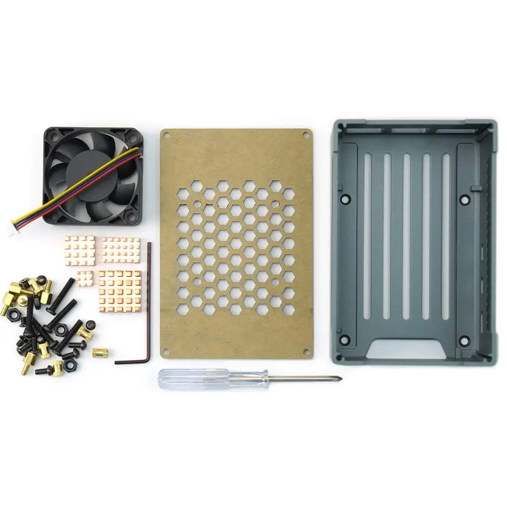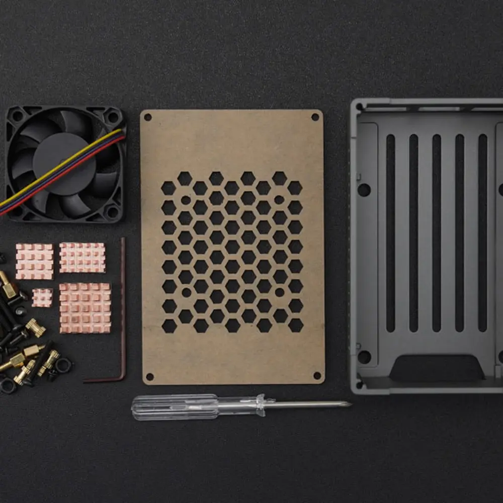 In de kit werkt een speciale warmteafvoerende koperen plaat onvermoeibaar om overtollige warmte te absorberen en af te voeren. Een ventilator met regelbare snelheid, een opvallende functie, biedt dynamische koeloplossingen door de snelheid intuïtief aan te passen aan de temperatuur van de Raspberry Pi . Deze intelligente ventilator zorgt ervoor dat je apparaat optimaal presteert, zelfs bij veeleisende taken.