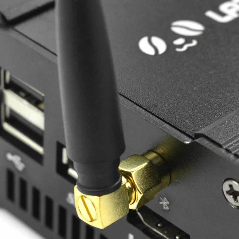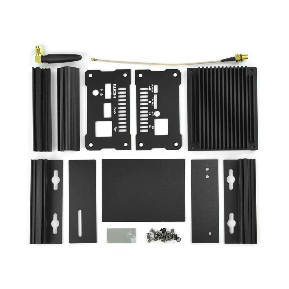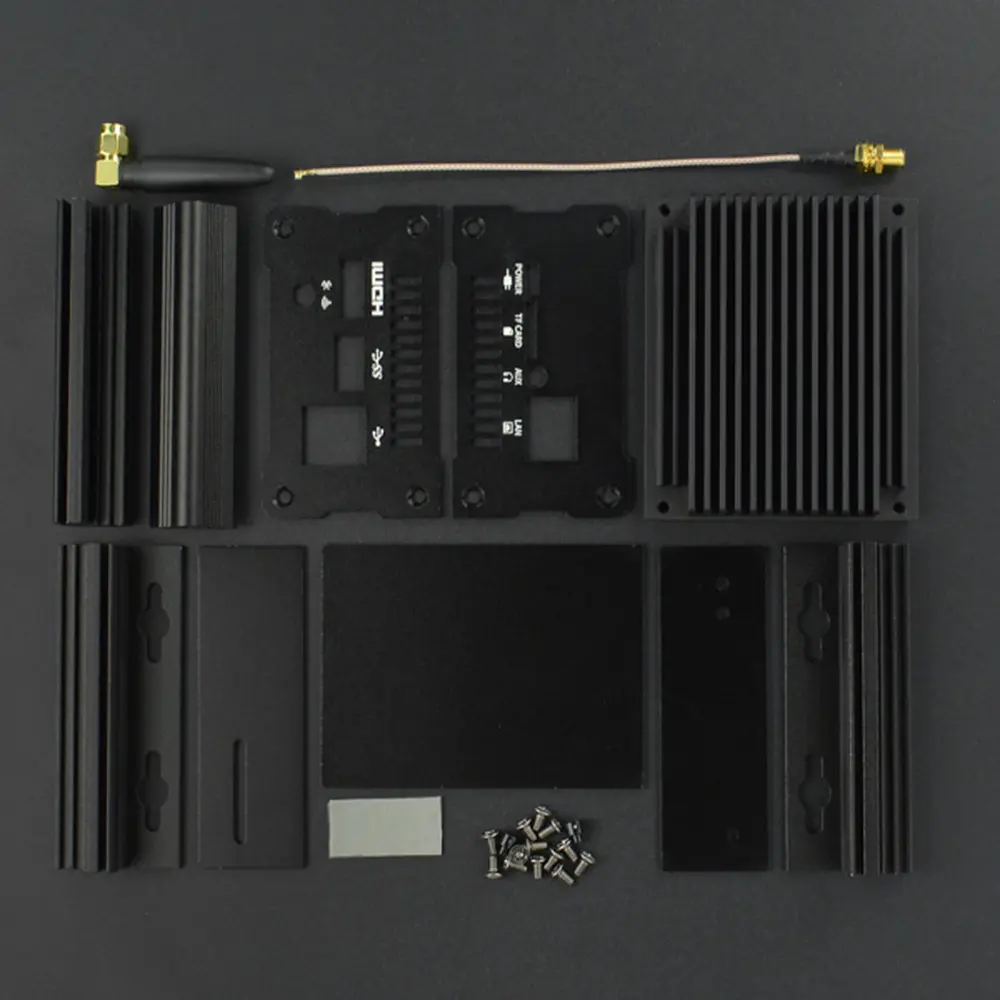 Deze aluminium heatsink- case biedt een slanke en duurzame behuizing voor het LattePanda V1- board . Hij is volledig vervaardigd uit aluminiumlegering en heeft een zwart geanodiseerde en gezandstraalde afwerking die de hardheid en slijtvastheid verbetert. Het elegante ontwerp wordt gecompleteerd door de externe versterkingsantennes, waardoor wifi- en Bluetooth-signalen naadloos kunnen worden ingevoerd.
