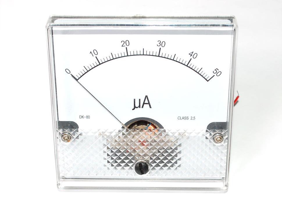 De meter heeft een bereik van 0 tot 50 μA, waardoor hij compatibel is met elke voeding. Om hem te gebruiken met een output microcontroller zoals een Arduino of AVR , sluit u de zwarte draad eenvoudigweg aan op de ground , plaatst u een weerstand in serie met de rode draad en sluit u deze aan op een PWM- output . Door de PWM-waarde van 0 tot 100% aan te passen, wordt de meter aangestuurd. Gebruik voor de weerstandsspecificaties (voedingsspanning) * 20.000; bijvoorbeeld 100 kOhm voor een voeding van 5 V of 66 kOhm voor een voeding van 3,3 V.