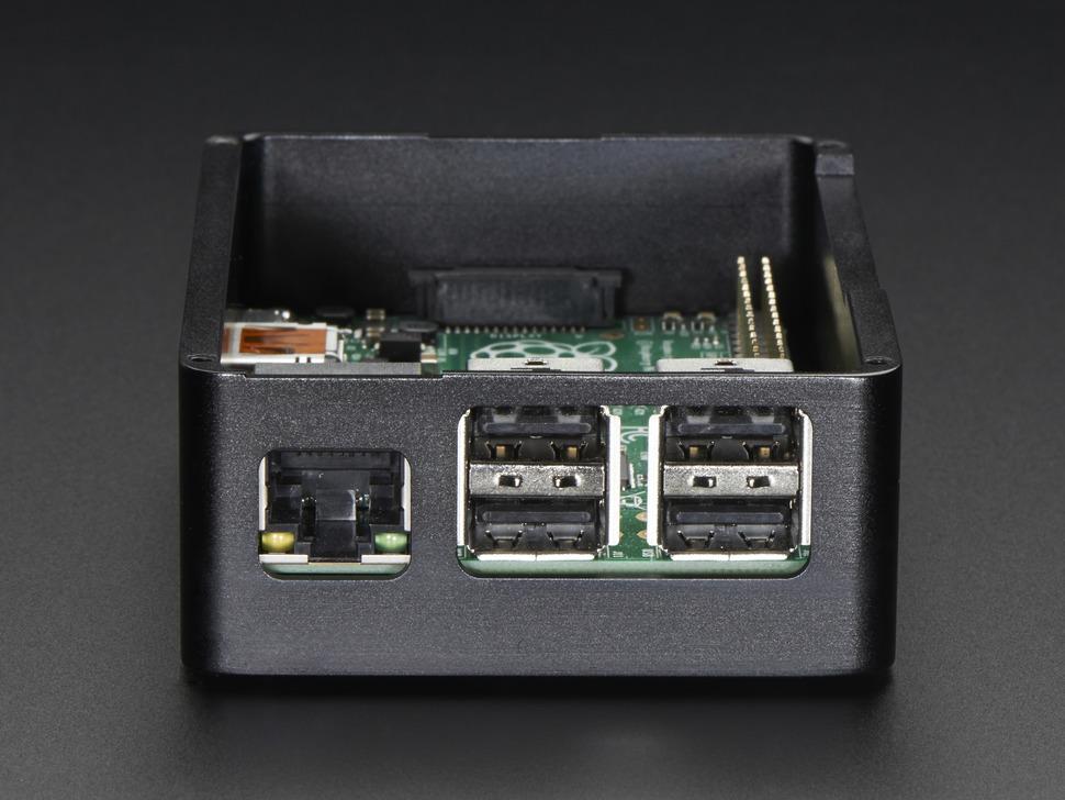 De tweedelige constructie heeft een verfijnde zwarte aluminium afwerking, waardoor het een ideale oplossing is voor wie op zoek is naar een elegante behuizing. Hoewel compatibel met de Pi 3, overweeg een andere optie als optimaal draadloos bereik essentieel is.