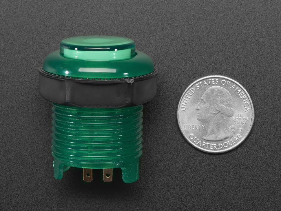 Dit is de 30 mm doorschijnende green versie van onze LED-arcadeknoppen. Sluit aan met 0,11 inch Quick-Connect-kabelparen voor een naadloze integratie.