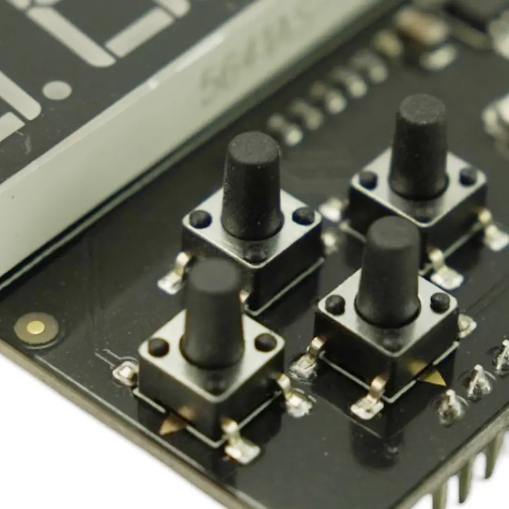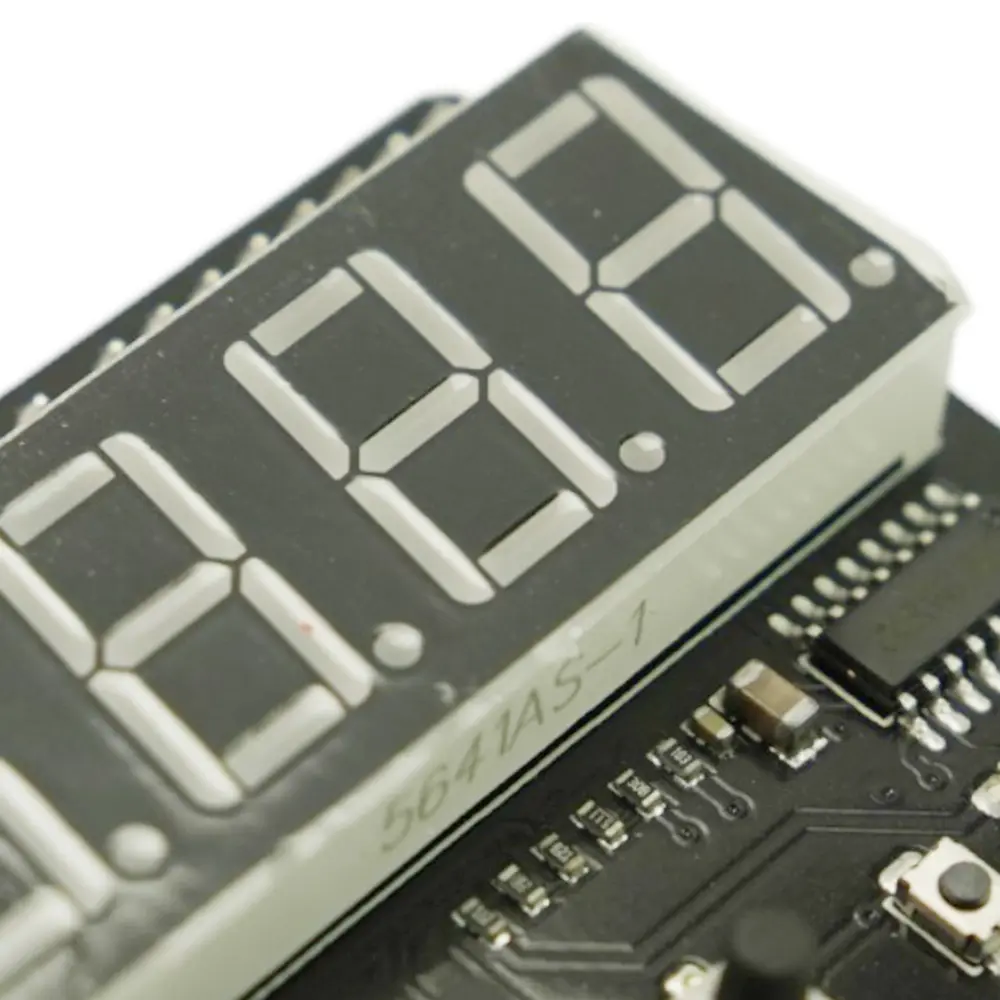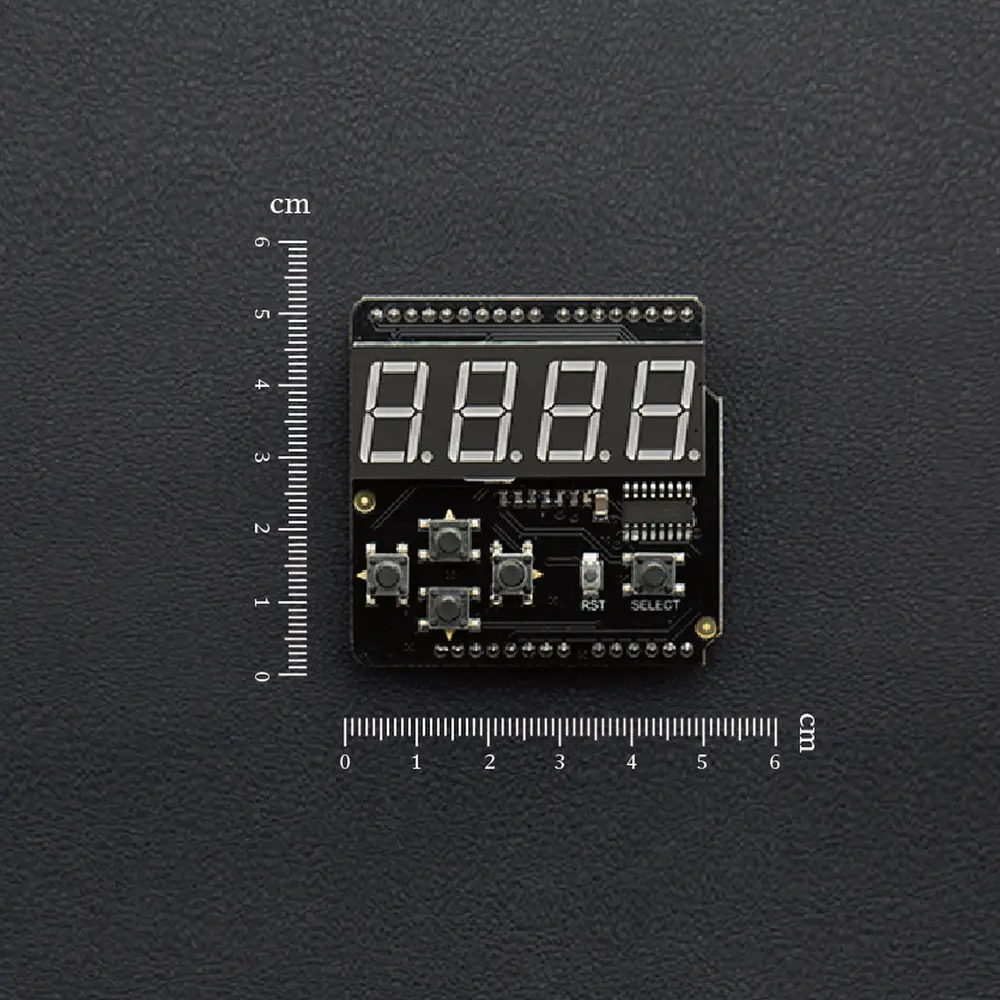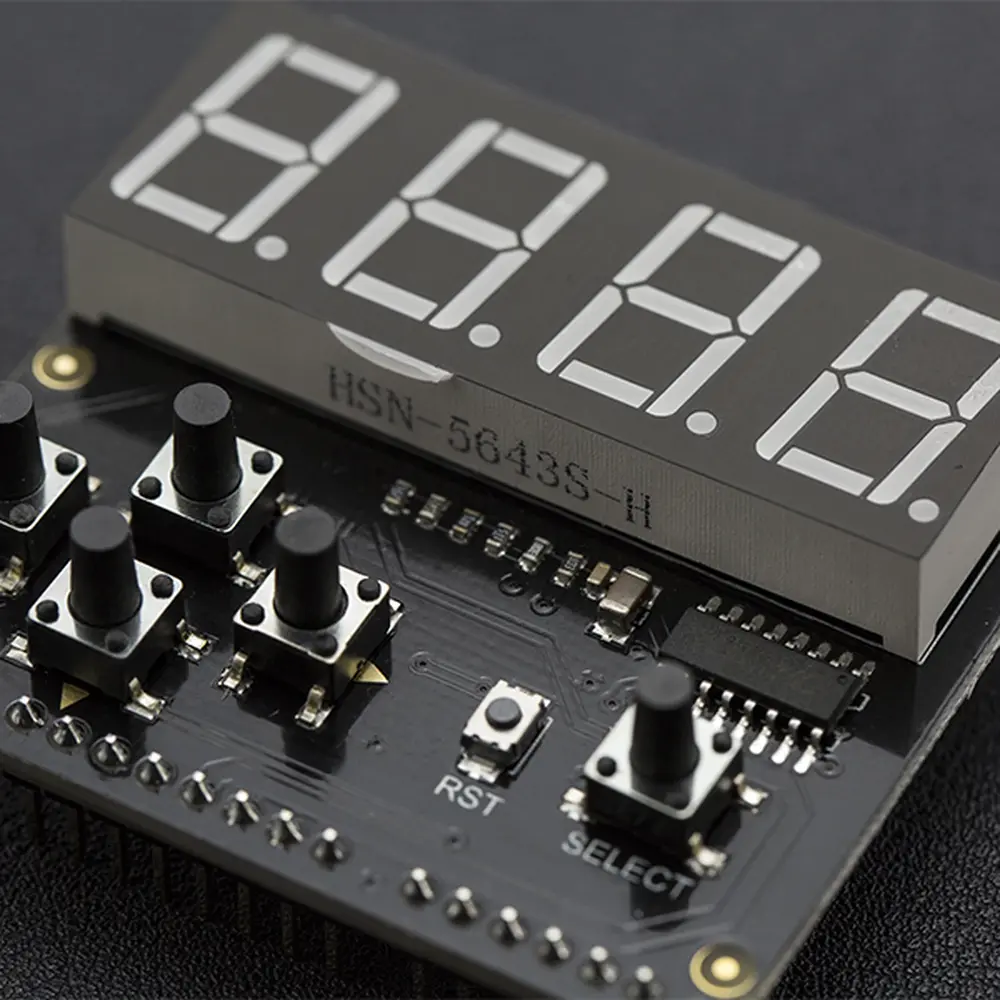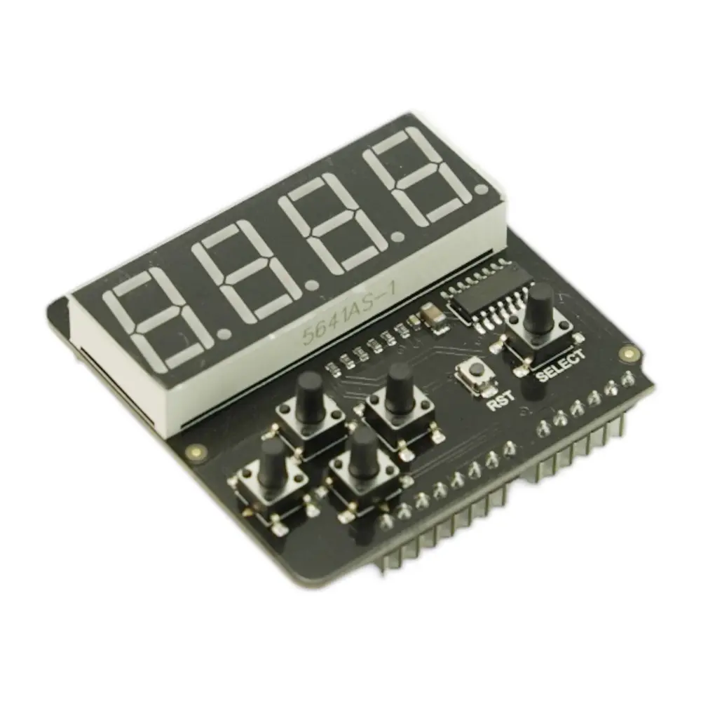 Het 4-cijferige display biedt het ideale platform voor het weergeven van timers, tellers en alle numerieke gegevens die u nodig hebt, zoals temperatuurmetingen of outputs . Bovendien zijn bediening en aanpassing binnen handbereik dankzij de integratie van vijf intuïtieve knoppen. Deze knoppen kunnen worden gebruikt om door menu's te navigeren, instellingen aan te passen of zelfs motoren en leds te bedienen, waardoor elk project een echt interactieve ervaring wordt.