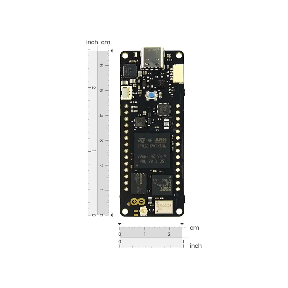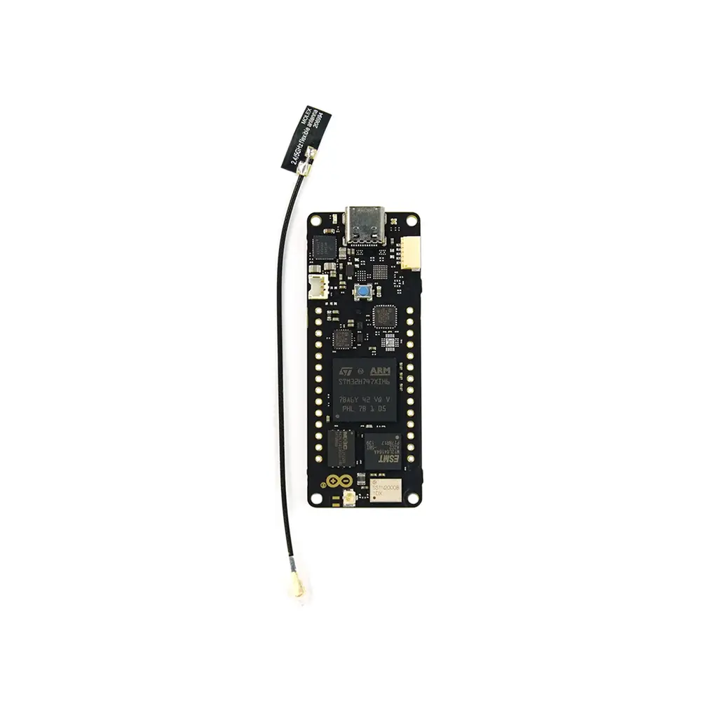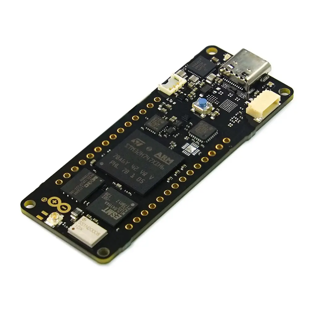 De Portenta H7 Lite Connected is een robuust MCU- board met essentiële draadloze mogelijkheden. Gebouwd rond dezelfde STM32H7 MCU-chip en Cortex-M7/Cortex-M4-core als zijn broertjes, kan het complexe multi-threaded bewerkingen efficiënt verwerken, wat snelle gegevensverwerking mogelijk maakt. Of u nu IoT-toepassingen ontwikkelt of bezig bent met snelle dataverwerking, dit board biedt naadloze prestaties.