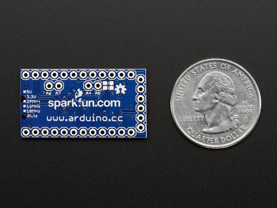 De Arduino Pro Mini biedt een gestroomlijnd ontwerp voor gebruikers die bekend zijn met Arduino -microcontrollers en werkt op 3,3 V met een 8 MHz bootloader op een ultracompact board . Het minimalistische ontwerp heeft geen connectoren, waardoor er flexibiliteit is om de aansluitingen en bedrading aan te passen aan specifieke behoeften.