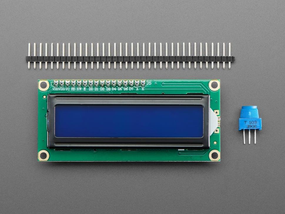 Adafruit Geassembleerde standaard LCD 16x2 + extra's - Wit op blauw