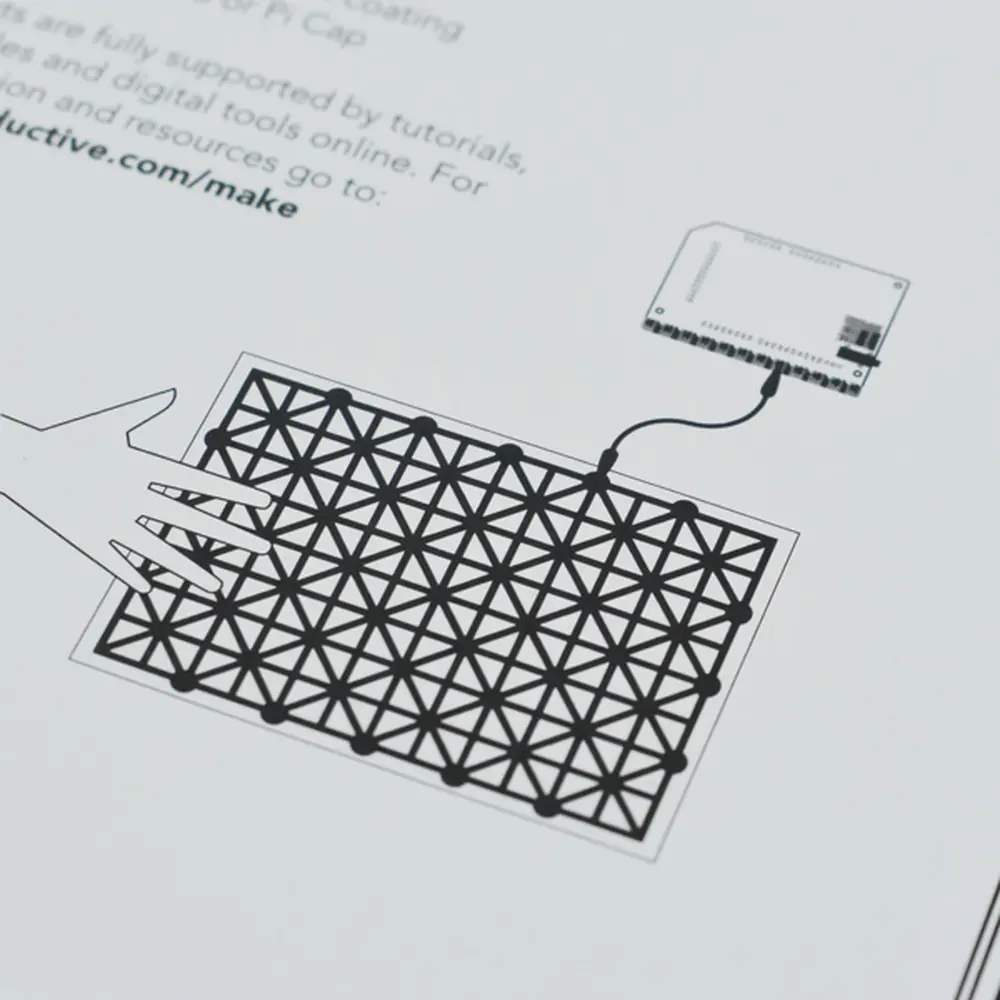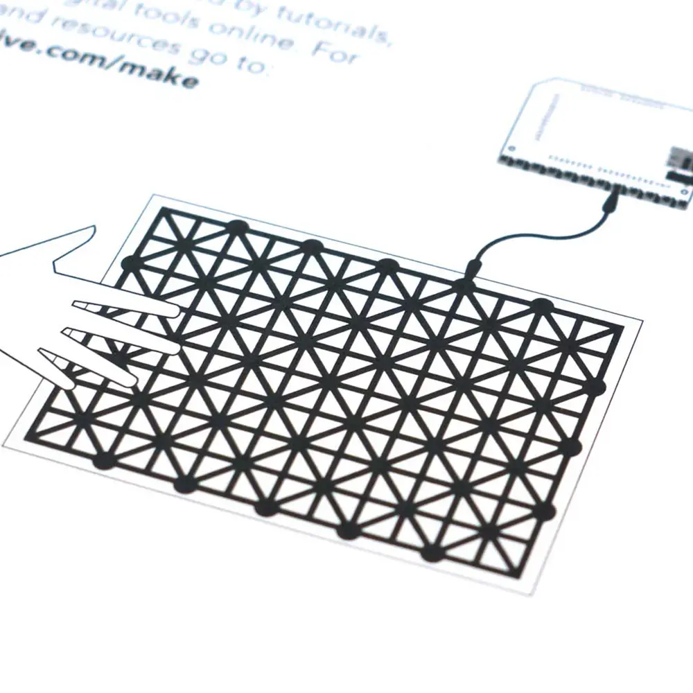 Elke geprinte sensor is uitgerust met 16 zichtbare toegangspunten, wat het aansluiten op capacitieve elektroden op printplaten zoals het Touch- board , de Pi Cap en het Light Up board vereenvoudigt. Het aansluiten van deze sensoren is in principe net zo eenvoudig als het aansluiten van een koptelefoon: slechts een directe verbinding om uw project op gang te brengen.