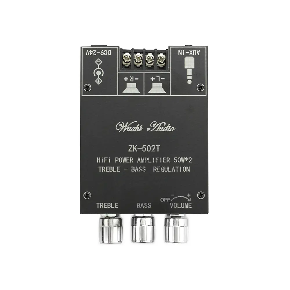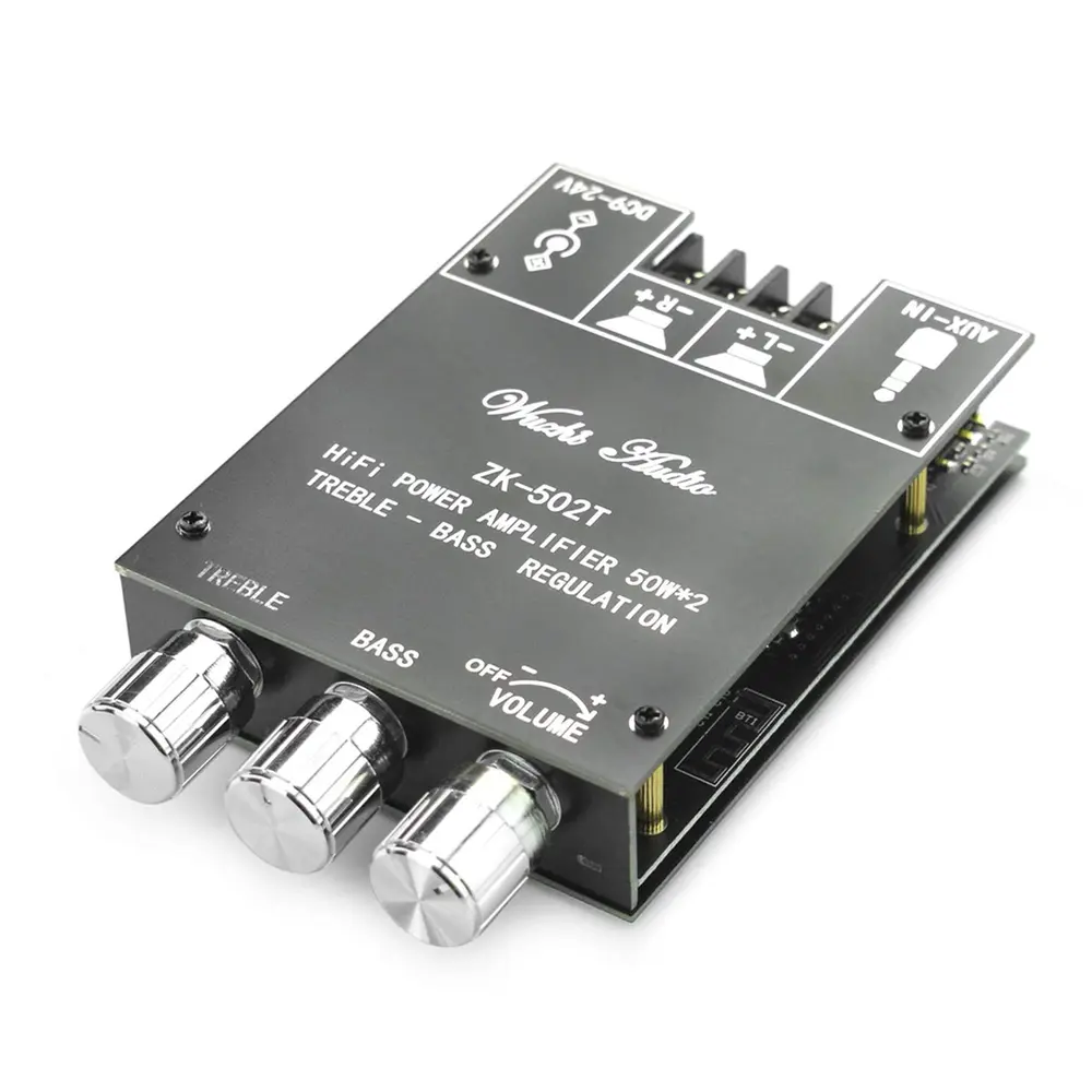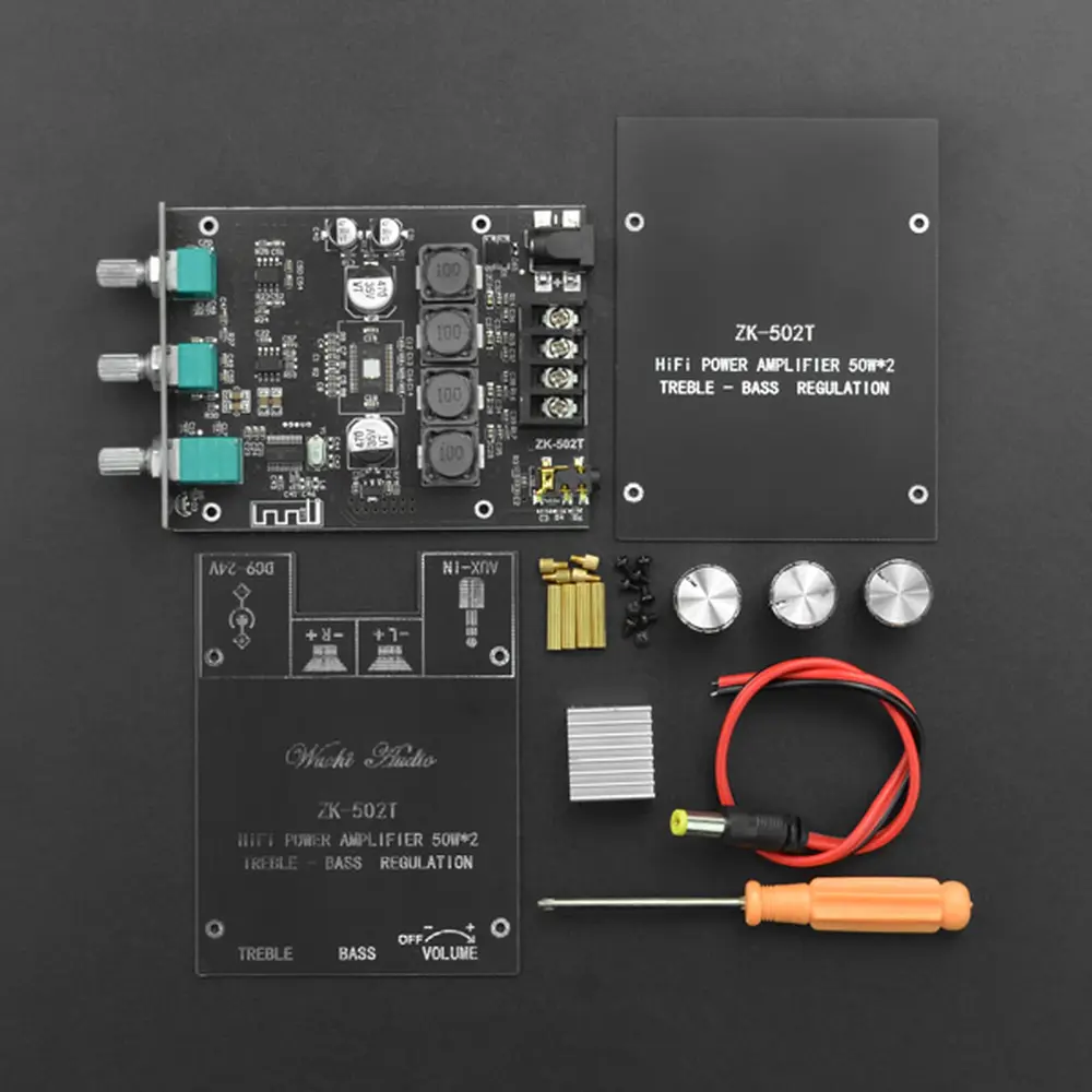 Deze krachtige Bluetooth-versterker is voorzien van onafhankelijke bas- en treble-regelingen, wat zorgt voor een audio-ervaring met een lage totale harmonische vervorming van 0,1%, zelfs bij langdurig gebruik met hoog vermogen. Hij maakt gebruik van een AM-interferentie- en filterfunctie voor een helder en rond geluid. Met een DC9-24V-voeding en AUX+Bluetooth 5.0-audio-ingang beschikt hij over een robuust output van 50 W, waardoor hij compatibel is met passieve luidsprekers van 4-8 Ω en 15-100 W. Het gebruiksvriendelijke ontwerp van het board is voorzien van drie instelbare knoppen voor het in- en uitschakelen en het regelen van het hoofdvolume, de bas en de treble.