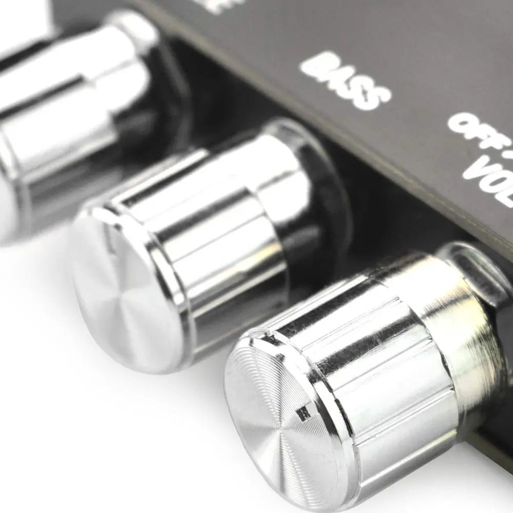Houd er rekening mee dat maximale prestaties worden bereikt met voldoende audio-ingang en spanning/stroom van de voedingsbron. Een hoge voedingsspanning resulteert in een beter output , maar de luidsprekerimpedantie speelt een cruciale rol in de output van de versterker. Pas de bas- en treble-instellingen zorgvuldig aan om vervorming van het geluid te voorkomen en houd het volume in balans door de knoppen dienovereenkomstig te draaien.